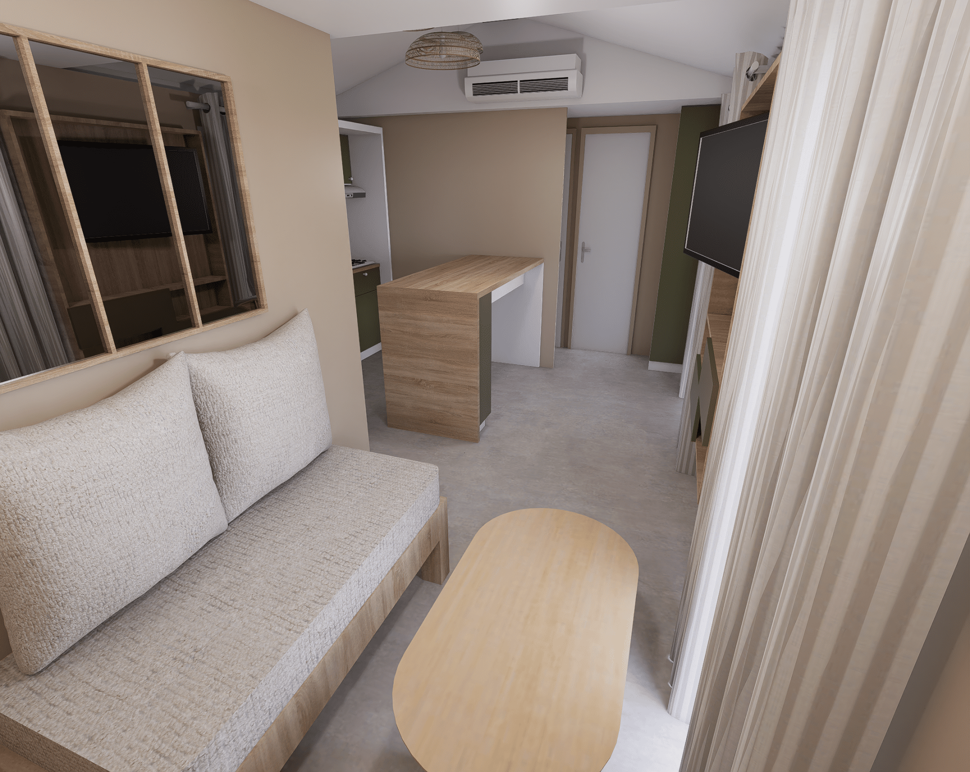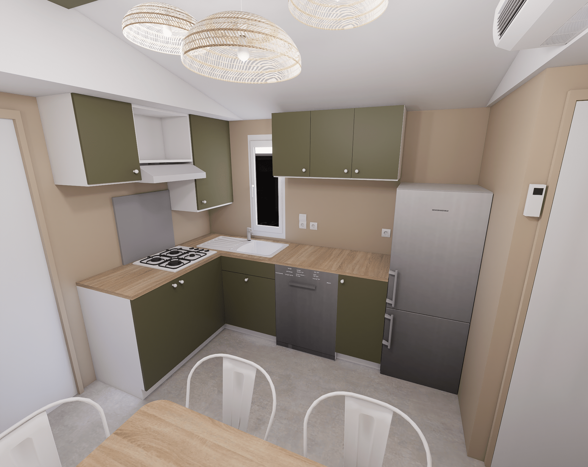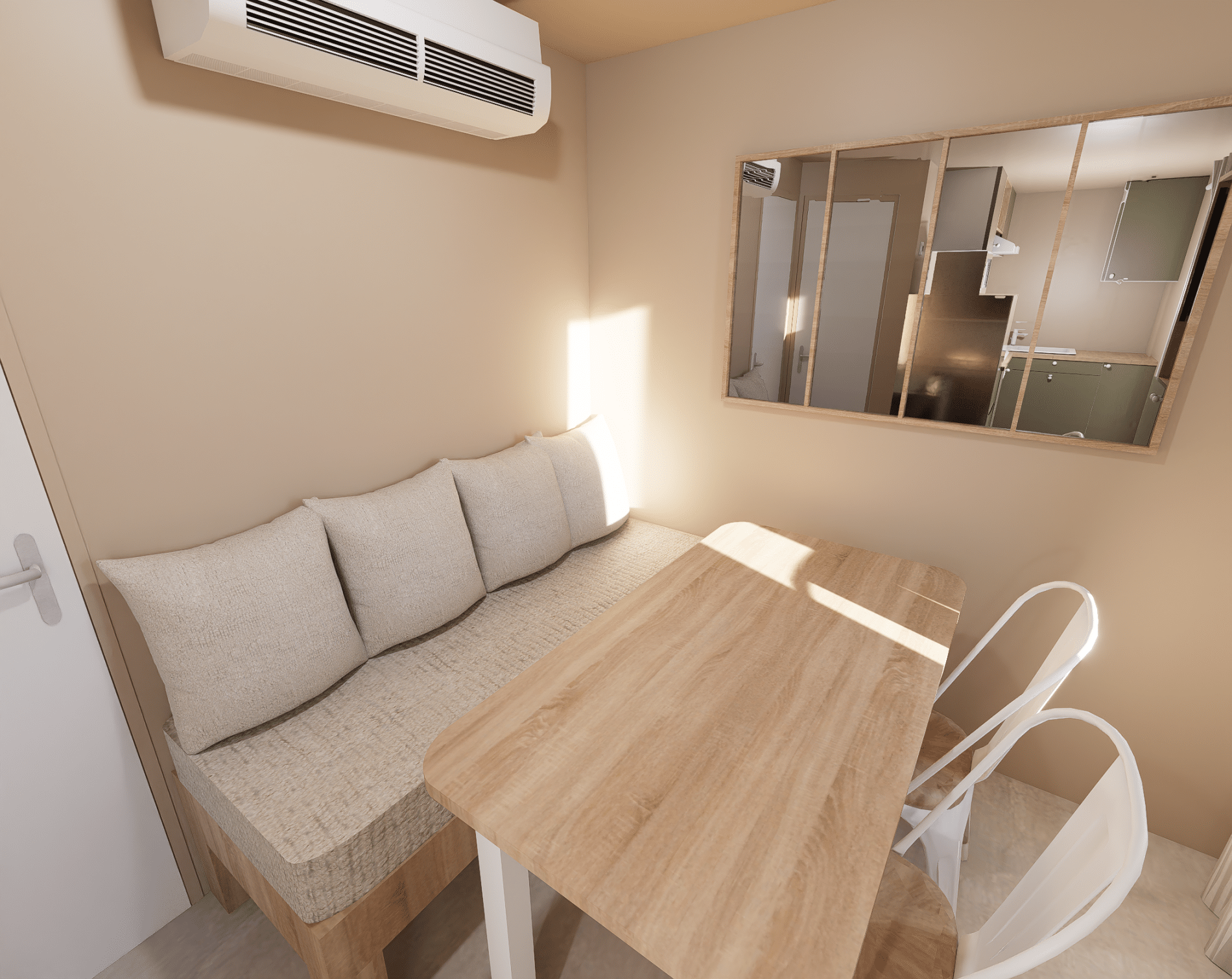 Le nostre case mobili hanno una cucina completamente attrezzata, cuscini e piumoni, aria condizionata reversibile, una televisione e una terrazza coperta con mobili da giardino.