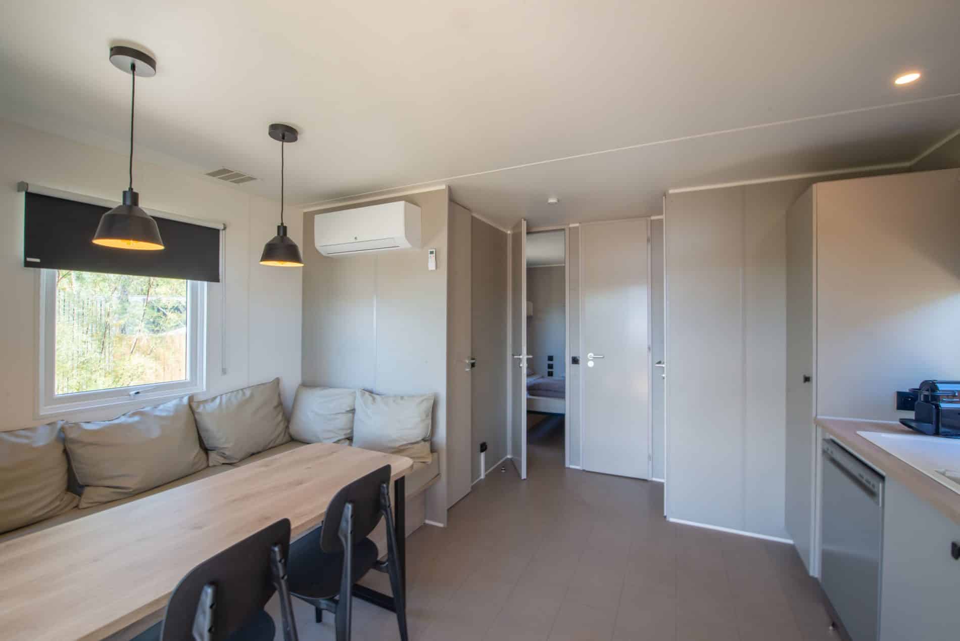 Situés en première ligne face à la mer, nos mobil-homes Confort Plus offrent un confort optimal et des équipements complets pour un séjour inoubliable les pieds dans le sable.